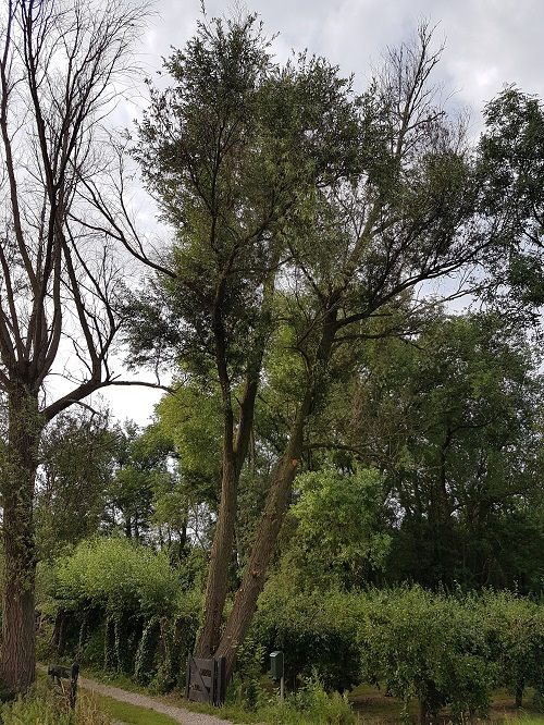 Van 23 meter hoge populier naar 3 meter hoge knotwilg. Deze boom is ziek en tijdens de zaagwerkzaamheden kwam ik er achter dat er vermoedelijk een probleem is met de wortels in de vorm van wortelrot. Toch is het de bedoeling hem nog een kans te geven en vandaar dat hij nu door het leven gaat als knotwilg. Hopelijk kan de boom op deze manier nog jaren mee, al zal hij gezien het rottingsproces op een paar plaatsen op een gegeven moment toch wel het loodje leggen.