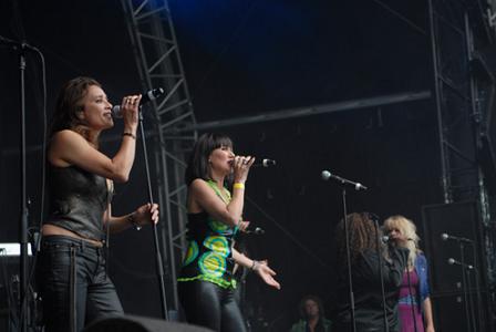 Om 18.00 ging het park weer open voor bezoekers en was het tijd om het avondprogramma te starten wat om 19.00 uur los ging met Girls wanna have fun. Een echte 'all girl band' maar als ik zeg 'meidenband' dan doe ik voor m'n gevoel deze groep dames echt tekort. Het muzikale deel van de band bestaat namelijk uit Tessa Boomkamp (drums), Astrid Akse (gitaar, percussie), Dalâl Marouf (gitaar), Joyce Grimes (bas) en Marianne Stel (keyboards). Deze muzikale dijk wordt aangevuld door de zangeressen Neel van der Elst, Manuëla Kemp, de zusjes Monique en Suzanne Klemann, Lies Schilp, Robbie Schmitz, Frédérique Spigt, Mieke Stemerdink, Janice Williams en Inge Bonthond. Stuk voor stuk bekende namen en ze hebben er echt wel een feestje van gemaakt.