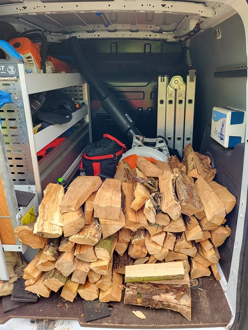 Van die potgrond en andere troep wordt de ketting van m'n zaag dan niet zo gelukkig, maar goed... even door rammelen en vijlen moet je na zo'n klusje toch wel dus maakt het allemaal niet zo veel meer uit. Daarna nog even uit de lange voorraad wat hout gehaald, op maat gezaagd en gekloofd om het gat wat afgelopen week in m'n drooghok ontstond even aan te vullen, het onderhoud van de kettingzaag gelijk maar gedaan en daarna alles weer terug gebracht naar de opslag.