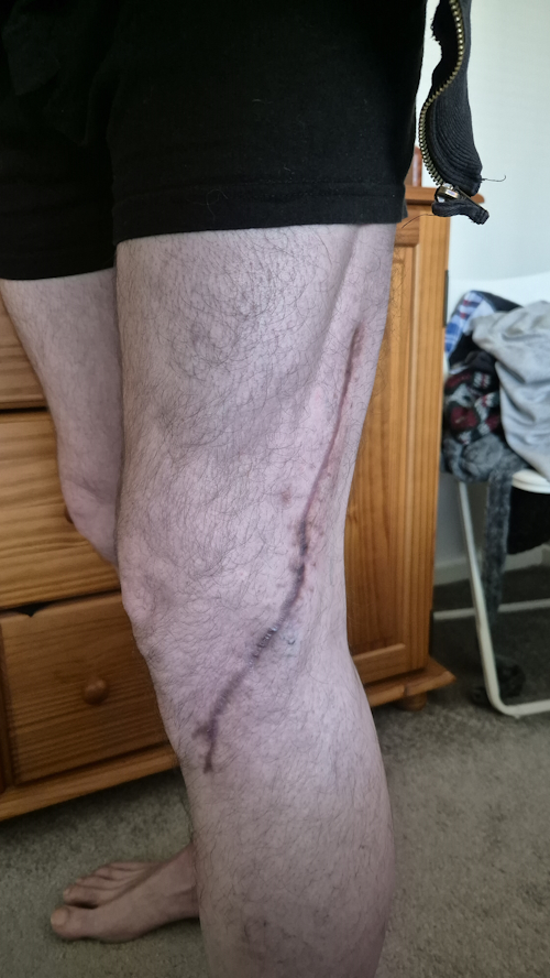 Niet dat het een probleem zou zijn als het niet meer 100% wordt, want ik kan in principe alles weer behalve op m'n knieën zitten waarbij m'n gewicht op m'n enkels rust. Dat geeft nog een vreemd gevoel waardoor ik m'n linkerbeen in zo'n geval een stukje naar buiten weg schuif zodat de knie niet zo ver gebogen hoeft te worden en dan is er eigenlijk niks aan de hand. De vrachtwagen op en af, traplopen en alle andere dingen die eerder niet gingen en later lastig gaan nu weer als vanzelf, dus praktisch gezien is er eigenlijk niks meer aan de hand en het herstel 100%. Tenminste, zo zie ik het. Nu ik 3 maanden verder ben en het herstel eigenlijk volledig is beschouw ik het daarom maar als afgesloten.